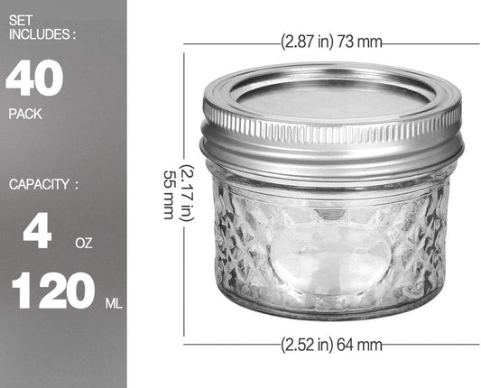 4 oz Mason Jars with Regular Lids - 40 Pack, Perfect for Jam, Honey, Wedding and Shower Favors, DIY Spice StorageVendor:BodPeaceRegular price $71.99 USDRegular priceUnit price / per$0.00 USDSale price $71.99 USD