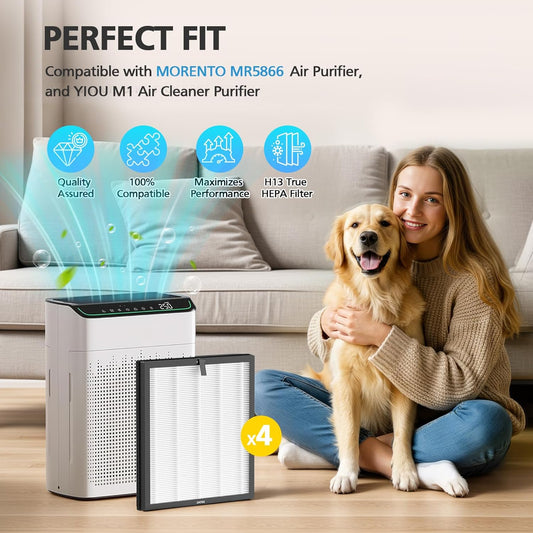 MR5866 Replacement Filter Compatible with MORENTO MR5866 Air Purifier, H13 True HEPA Filter Perfect for Home Large Room, MR5866 Filter for 99.97% Air Pollutants, Odor and Smoke, Original, 2 Pack