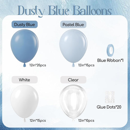 Dusty Blue Balloons Set 60 Pcs 12 Inch Blue White Decor