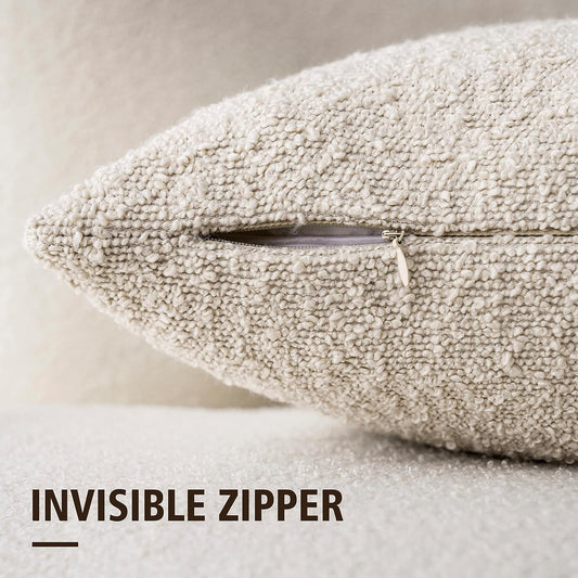 Pack of 2 Textured Boucle Throw Pillow Covers Accent Solid Lumbar Pillow Cases Cozy Soft Decorative Couch Cushion Case for Chair Sofa Bedroom Living Room Home Decor, 12 X 20 Inch,Beige