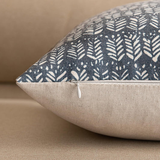 Set of 2 Neutral Boho Farmhouse Throw Pillow Covers 18X18 Inch Dark Blue Vintage Accent Floral Cotton Linen Pillowcases for Couch Bed Living Home Decor