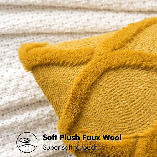 Spring Decorative Throw Pillow Covers Mustard Yellow 18X18 Inch Set of 2, Soft Plush Faux Wool Couch Cushion Covers Farmhouse Throw Pillows for Couch Bed Sofa Living Room