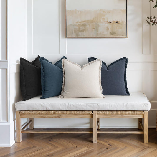 Christmas Decorative Couch Pillow Covers Neutral Linen Fringe Throw Pillows Set of 4 Boho Farmhouse Cushion Modern Pillowcases for Bed Sofa Living Room Home Decor 18X18 Inch Beige/Coastal Blue