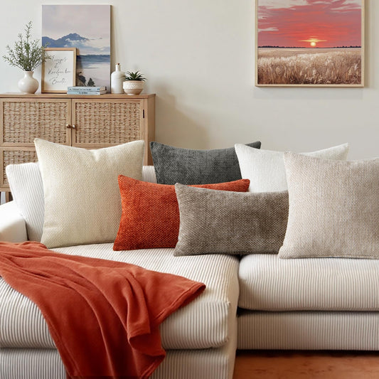 Pack of 2 Fall Burnt Orange Decorative Pillow Covers 18X18 Inch Soft Chenille Couch Throw Pillows Farmhouse Cushion Covers for Home Decor Sofa Bedroom Living Room