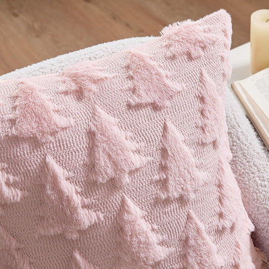 Christmas Throw Pillow Covers Pink Christmas Decorations Set of 2 Xmas Tree 18X18 Pillow Covers Soft Plush Faux Wool Pillowcases Holiday Festivals Winter Home Decor Sofa Couch Bed Porch