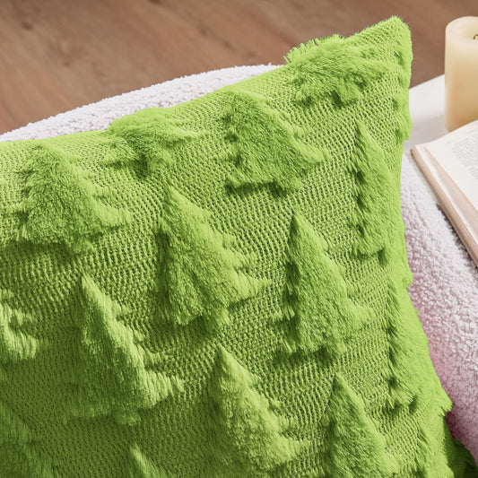 Christmas Throw Pillow Covers Green Christmas Decorations Set of 2 Xmas Tree 18X18 Pillow Covers Soft Plush Faux Wool Pillowcases Holiday Festivals Winter Home Decor Sofa Couch Bed Porch