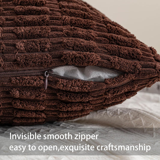 Corduroy Throw Pillow Covers 18x18 Set of 2 Coffee