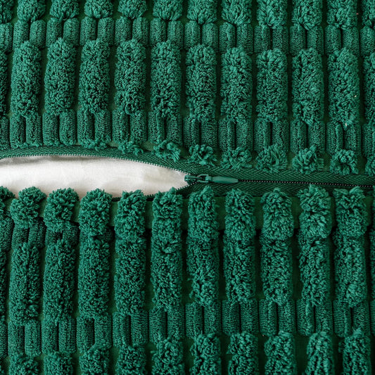 Christmas Green Corduroy Decorative Throw Pillow Covers Pack of 2 Soft Striped Pillows Pillowcases with Broad Edge Winter Modern Boho Home Decor for Couch Sofa Bed Spring 18X18 Inch