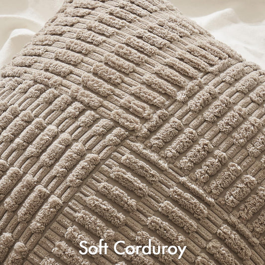 Set of 2 Light Brown Decorative Pillow Covers 18X18 Inch Textured Striped Patchwork Accents Farmhouse Boho Soft Corduroy Couch Pillows for Sofa Living Room Bed Home Decor