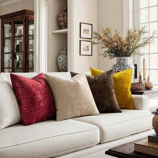 Velvet Throw Pillow Covers Set of 2, Soft Neutral Decorative Pillow Cases with Luxurious Textured Vintage Cushion Covers for Home Decor Couch Sofa Bed,Beige 18X18 Inch
