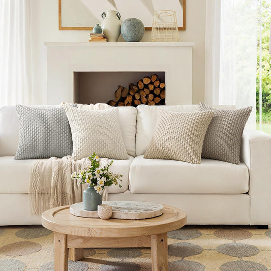 Throw Pillow Covers Soft Couch Decorative Set of 4 Boho Striped Cushion Corduroy Pillowcases Farmhouse Rustic Mid Modern Home Decor for Couch Bed Sofa Living Room 18X18 Inch Neutral Harmony