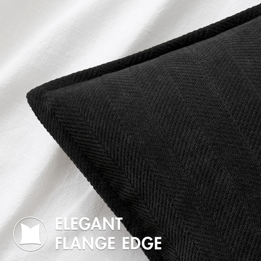 Pack of 2 Black Decorative Pillow Covers 18X18 Inch Soft Chenille Luxurious Couch Throw Pillows Farmhouse Cushion Covers with Elegant Design for Sofa Bedroom Living Room Home Decor