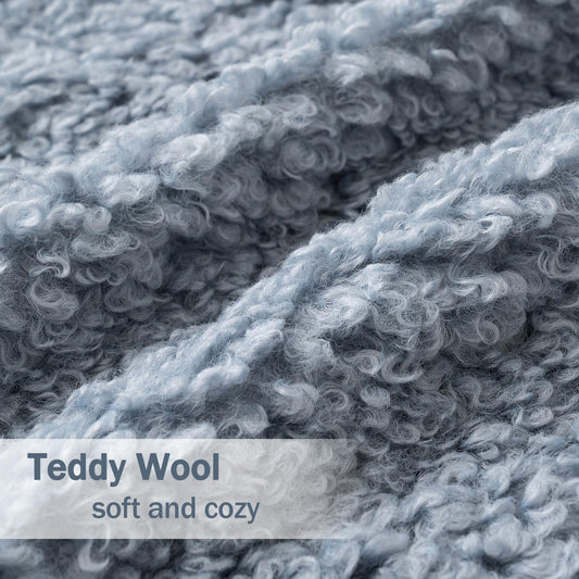 Pack of 2 Dusty Blue Faux Fur Throw Pillow Covers 18X18 Inch Boucle Decorative Sherpa Pillow Covers Fuzzy Accent Soft Sheepskin Fleece for Boho Home Decor Sofa Living Room Couch Bed