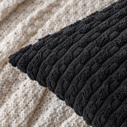 Throw Pillow Covers Soft Corduroy Decorative Set of 2 Boho Striped Pillow Covers Pillowcases Farmhouse Home Decor for Couch Bed Sofa Living Room 18X18 Inch Black