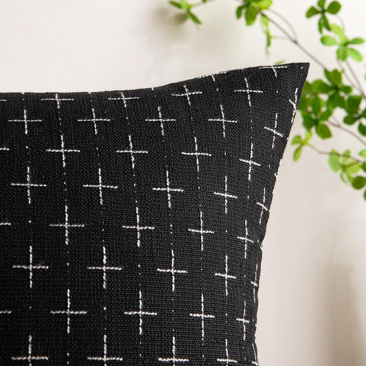 Pack of 2 Decorative Burlap Linen Throw Pillow Covers Modern Farmhouse Vintage Pillowcase Rustic Woven Textured Cushion Cover for Sofa Couch Bed 18X18 Inch Black