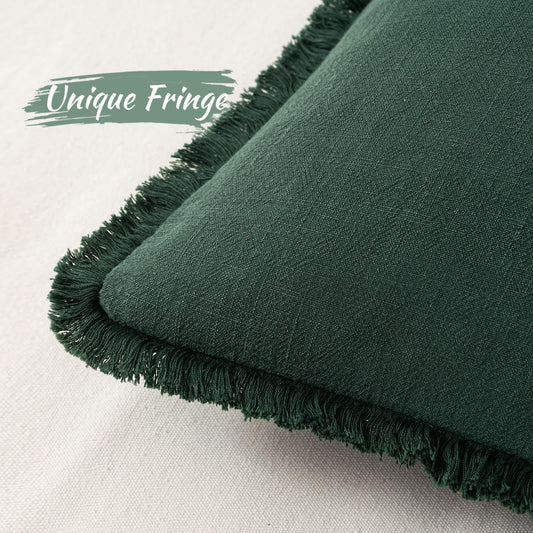 Linen Pillow Covers 18X18 Inch Dark Green Decorative Throw Pillows with Fringe Pack of 4 Soft Farmhouse Boho Couch Pillows Home Decors for Sofa Cushion Living Room Bed
