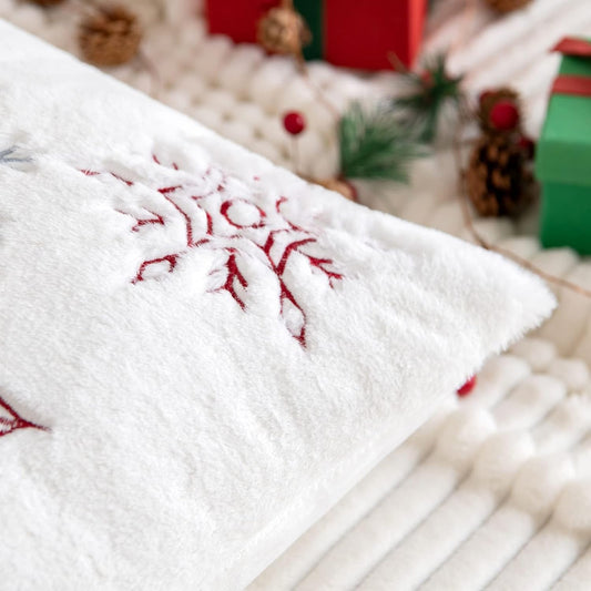 Pack of 2 Christmas Decorative Throw Pillow Covers Soft Faux Fur Pillow Cases with Embroidery Snowflake Winter Cute Pillowcases Holiday Decor for Couch Sofa Bedroom, 16×16 Inch, Burgundy