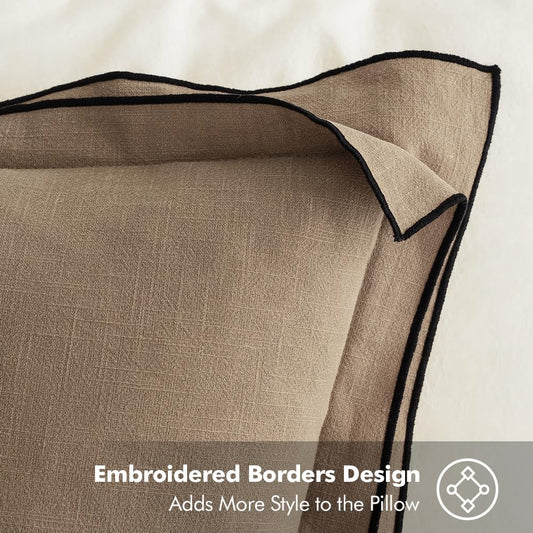 Linen Throw Pillow Covers, 2 Piece 18X18 Inch Khaki, Boho Euro Pillowcases for Bed to Infuse Elegance, Ideal for Sofa Couch Cushion in Home Decor Upgrade