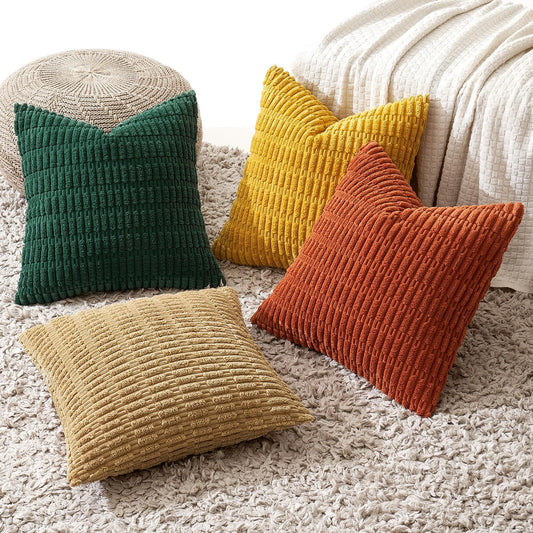 Pack of 4 Boho Farmhouse Yellow and Orange Corduroy Decorative Throw Pillow Covers 18X18 Inch Modern Retro Soft Striped Pillow Covers Home Decor for Sofa Living Room Couch Bed
