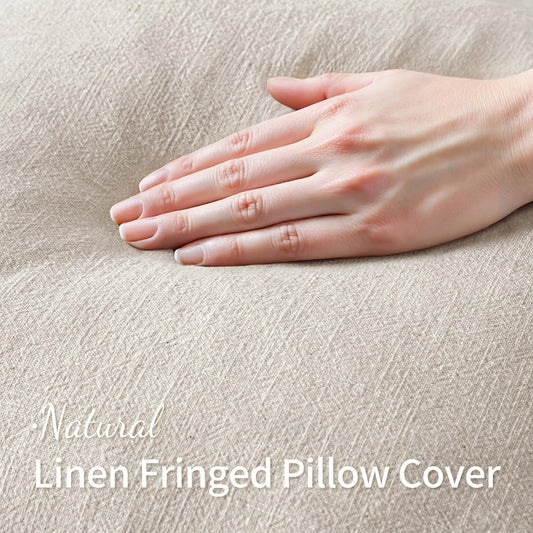 Christmas Decorative Throw Pillow Covers Neutral Linen Fringe Throw Pillows Set of 2 Natural Beige Boho Farmhouse Cushion Covers with Tassels for Couch Sofa Bed Living Room Decor 18X18 Inch