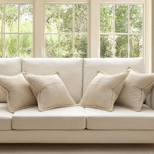 Beige Throw Pillow Covers 18X18 Inch 4 Packs Soft Boho Decorative Pillow Cases Accent Farmhouse Corduroy Patchwork Cushion Cases with Invisible Zipper for Couch Sofa Bed Home Decor