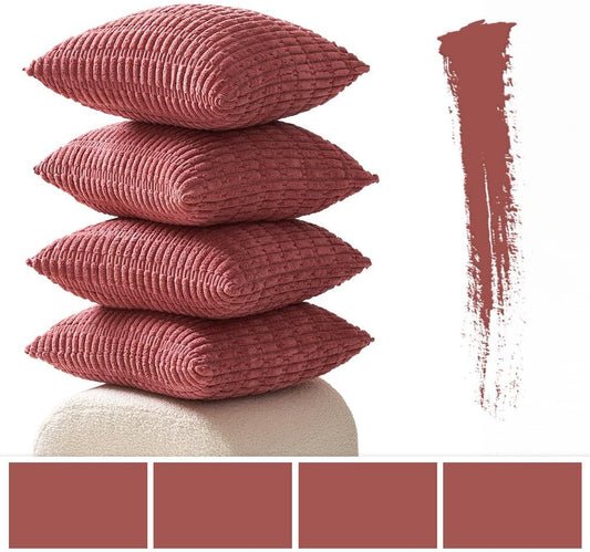 Pack of 4 Corduroy Decorative Throw Pillow Covers 16X16 Inch Soft Boho Striped Pillow Covers Modern Farmhouse Home Decor for Sofa Living Room Couch Bed Cranberry Red