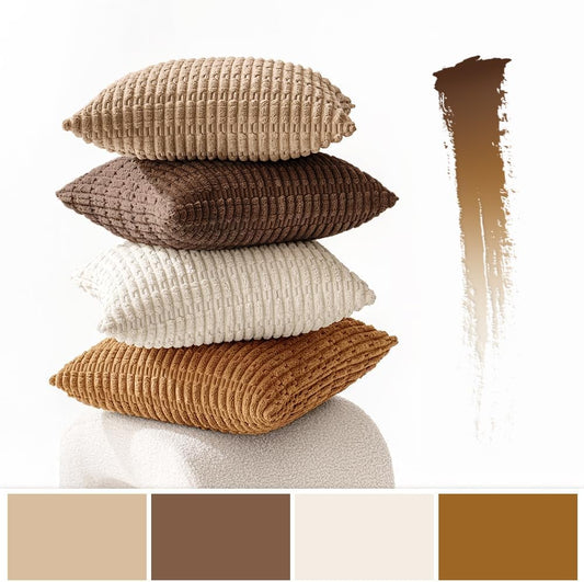 Pack of 4 Neutral Corduroy Decorative Throw Pillow Covers 18X18 Inch for Sofa Living Room Couch Bed Rustic Farmhouse Boho Soft Striped Pillow Covers Home Decor Brown