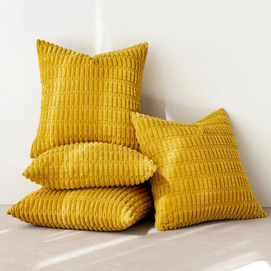 Pack of 4 Mustard Yellow Corduroy Decorative Spring Throw Pillow Covers 16X16 Inch Soft Boho Striped Pillow Covers Modern Farmhouse Home Decor for Sofa Living Room Couch Bed