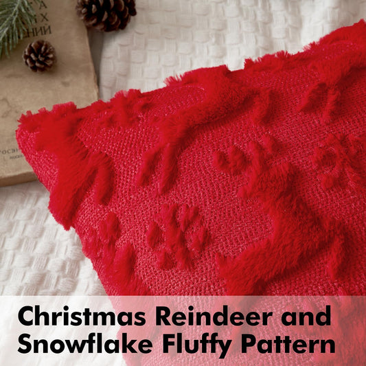 Christmas Reindeer and Snowflakes Pillow Covers 18X18 Inch Red Throw Pillows Set of 2 Decorative Festival Soft Fluffy Winter Pillow Covers for Home Decors Couch Sofa Livingroom Bed