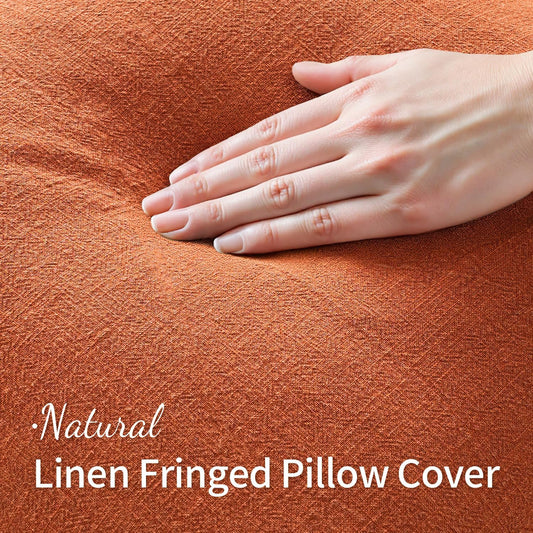 Fall Decorative Throw Pillow Covers Neutral Linen Fringe Throw Pillows Set of 2 Burnt Orange Boho Farmhouse Cushion Covers with Tassels for Couch Sofa Bed Living Room Home Decor 18X18 Inch