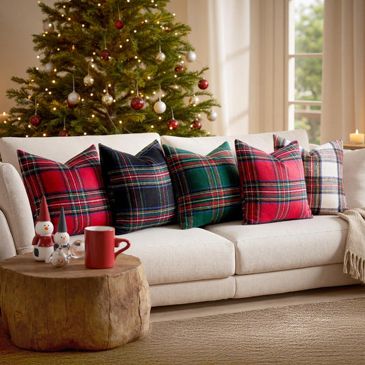 Christmas Plaid Decorative Throw Pillow Covers Set of 2 Scottish Tartan Vintage Farmhouse Winter Cuhion Case Pillow Covers for Couch Livingroom Sofa Bed Porch Home Decor 18X18Inch Green