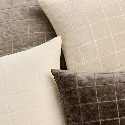 Decorative Chenille Check Throw Pillow Covers Vintage Plaid Couch Pillows 18X18 Inch Set of 2 Neutral Boho Farmhouse Cushion Covers Modern Home Decor for Sofa Bed Living Room Taupe Grey