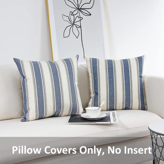 Stripe Throw Pillow Covers Farmhouse Pillowcases Pack of 2 18 X 18 Inch Blue