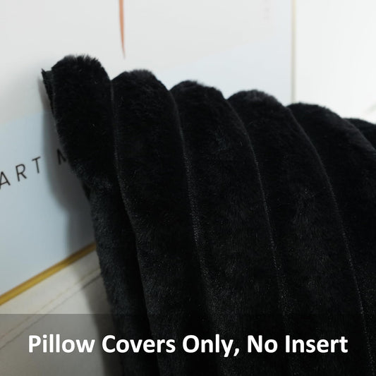 Pack of 2 Faux Fur Plush Decorative Throw Pillow Covers Couch Cushion Case Soft Pillowcases (Black, 20 X 20-Inch)