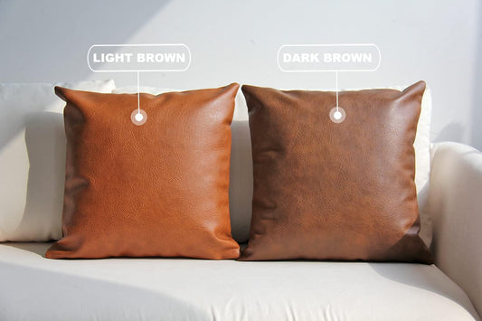 Modern Leather Throw Pillow Covers for Couch Sofa Bed Set of 2 100% Faux Leather Dark Brown 20" X 20"