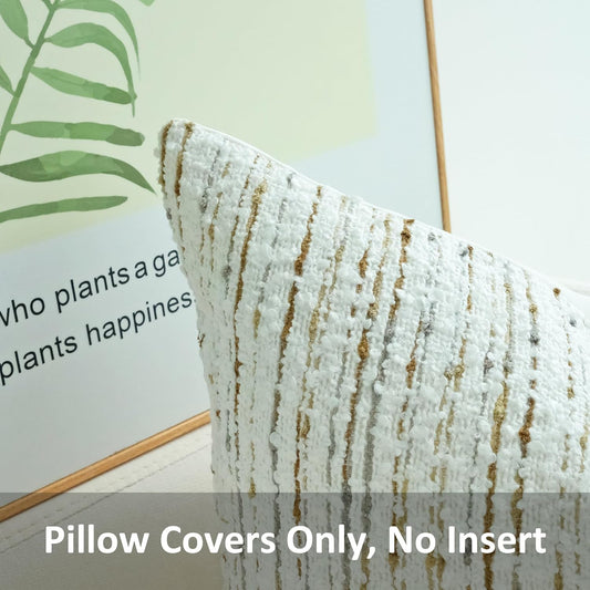 Pack of 2 Textured Boucle Decorative Throw Pillow Covers Farmhouse Boho Home Decor Striped Corduroy Square Chenille Pillowcases 18 X 18 Inch White