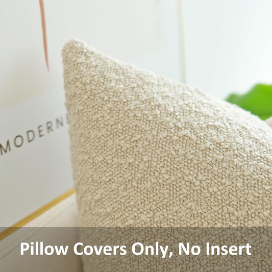 Pack of 2 Textured Boucle Throw Pillow Covers Accent Solid Pillowcovers Home Decor 20 X 20 Inch Beige