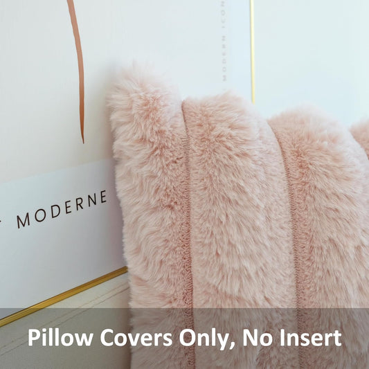 Pack of 2 Faux Fur Plush Decorative Throw Pillow Covers Couch Cushion Case Soft Fluffy Pillowcases Wide Stripe (Pink, 18 X 18 Inch)