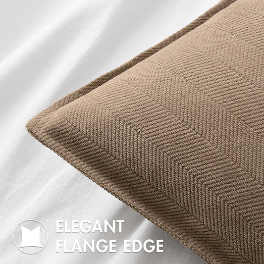 Beige Corduroy Decorative Pillow Covers - Set of 2, Soft Solid Couch Pillowcases with Cross Patchwork Design for Living Room and Bedroom, 12x24 Inches