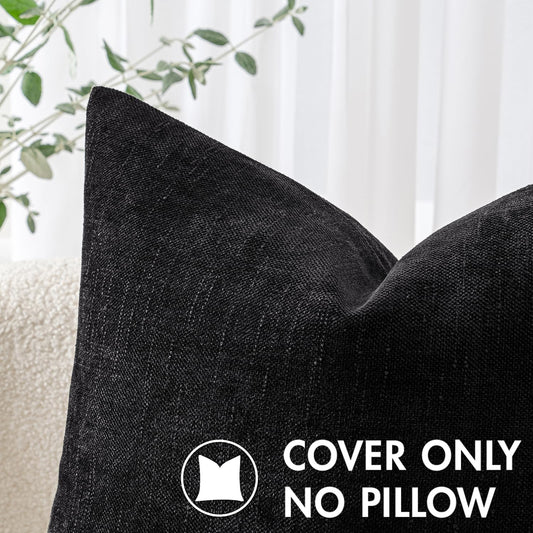 Set of 2 Chenille Decorative Throw Pillow Covers - Soft Textured Cushion Covers in Solid Black for Couch, Sofa, and Bedroom, 20x20 Inches