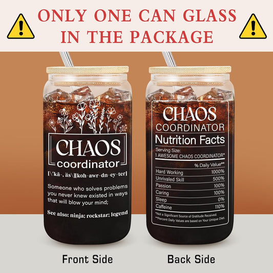 Thank You Gifts for Chaos Coordinator, Boss Lady Gifts for Women, Teacher Appreciation Gifts, Inspiration Work Gifts for Coworkers, Employees, Manager, Nurse on Birthday Christmas - 18 Oz Can Glass