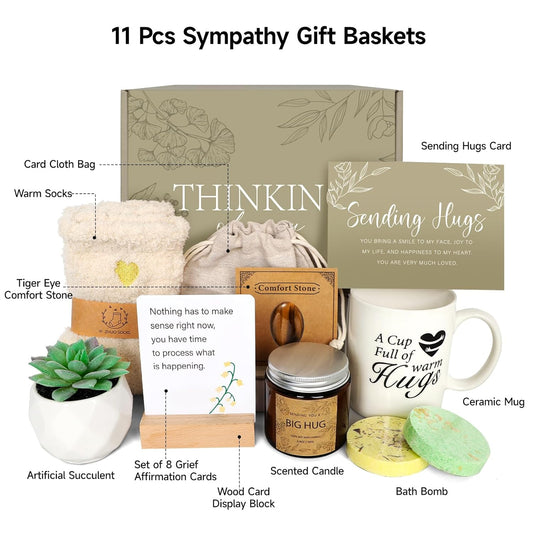 Sympathy Gift Baskets - Care Package Get Well Soon Gifts for Women, Thinking of You after Surgery Gifts Feel Better Gifts for Sick Friend, Memorial Gift, Get Well Gifts for Best Friend Bff Mom Sister
