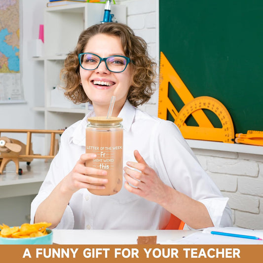 Teacher Appreciation Gifts - Best New Teacher Gifts for Women, Funny Back to School Present for Teachers, Thank You Teachers Gift for Retirement Birthday Christmas, Sight Words 16 Oz Glass Cup