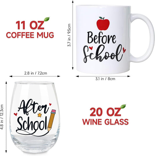 Teacher Appreciation Gifts for Women - 11Oz Coffee Mug & 19Oz Wine Glass, Funny & Thank You Gifts, before & after School Drinks