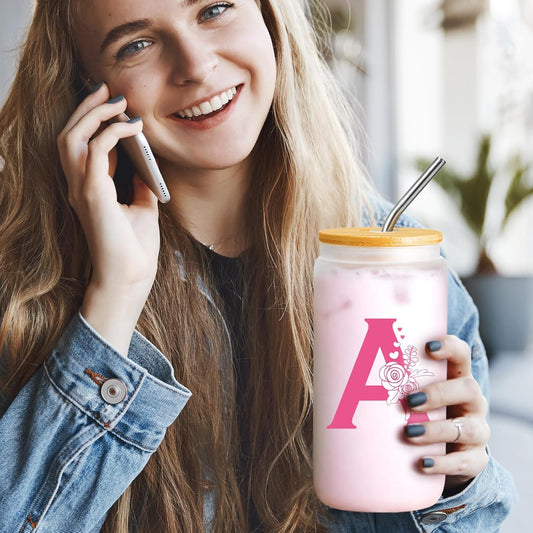 Birthday Gifts for Teen Girls, Monogrammed Initial Gifts for Teen Girls Birthday Christmas, Gift Basket for Women Teenager Girl Friend Bestie Sister, Teenager Girl Gift Personalized Glass Cup A