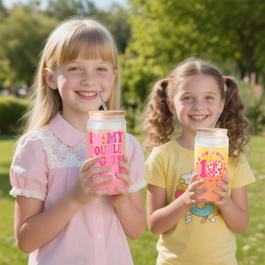Birthday Gifts for Women, Monogrammed Initial Glass Cup Personalized Gifts for Women, 16Oz Glass Cups with Lids and Straws, Iced Coffee Cup, Beer Can Shaped Glass - Gifts for Christmas, Birthday, A