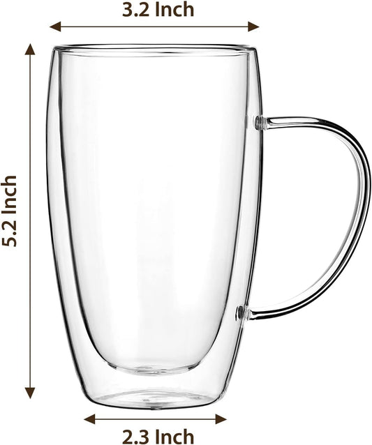 2-Pack 15 Oz Double Walled Glass Coffee Mugs with Handle,Large Insulated Layer Coffee Cups,Clear Borosilicate Mugs,Perfect for Cappuccino,Tea,Latte,Espresso,Hot Beverage,Wine,Microwave Safe