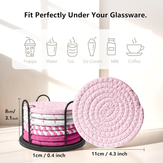 Coasters Set of 8 for Drinks, Beer, Coffee, Cotton Woven 4 Colors Absorbent Coaster with Holder, Boho Coasters for Home Decor Tabletop Protection Suitable for Kinds of CupsVendor:BodPeaceRegular price $37.99 USDRegular priceUnit price / per$51.99 USDSale price $37.99 USDSale