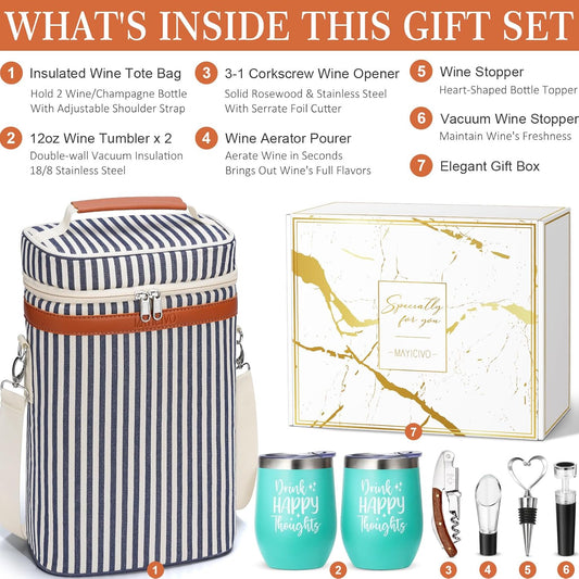 Birthday Gifts for Women Men - Wine Gifts Baskets Mothers Day Gifts for Mom, Women, Friend, Wine Lovers, Self Care Package, Insulated Wine Tote Bag Wine Carrier with Tumblers & Wine Accessories SetVendor:BodPeaceRegular price $84.99 USDRegular priceUnit price / per$114.99 USDSale price $84.99 USDSale