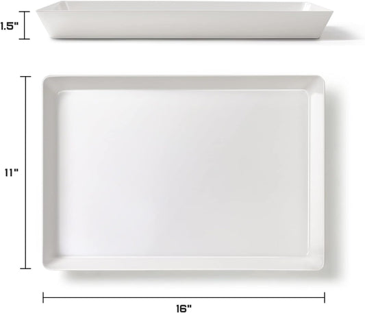 3 Pack, 16" X 11" Large White Serving Trays Set - Reusable Plastic Serving Platters for Cookie, Appetizer, Charcuterie, Snack, Dessert, Party Food Display - Stackable Kitchen Countertop Tray, BPA Free